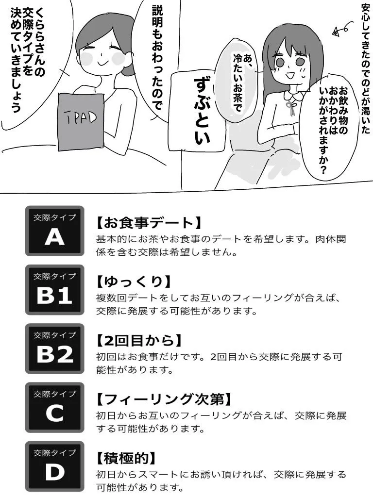 食事のみ・継続希望などスタンスが合えばトラブルを防げます。
