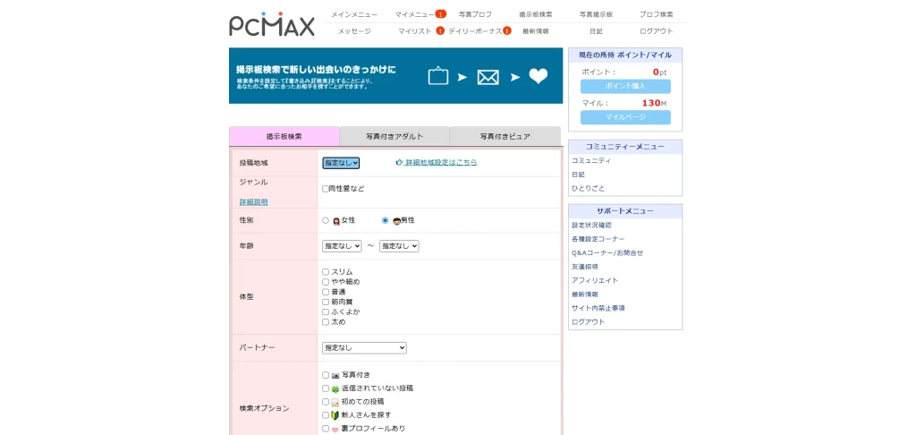 PCMAXでは、掲示板を用いたマッチングサービスを提供しています。